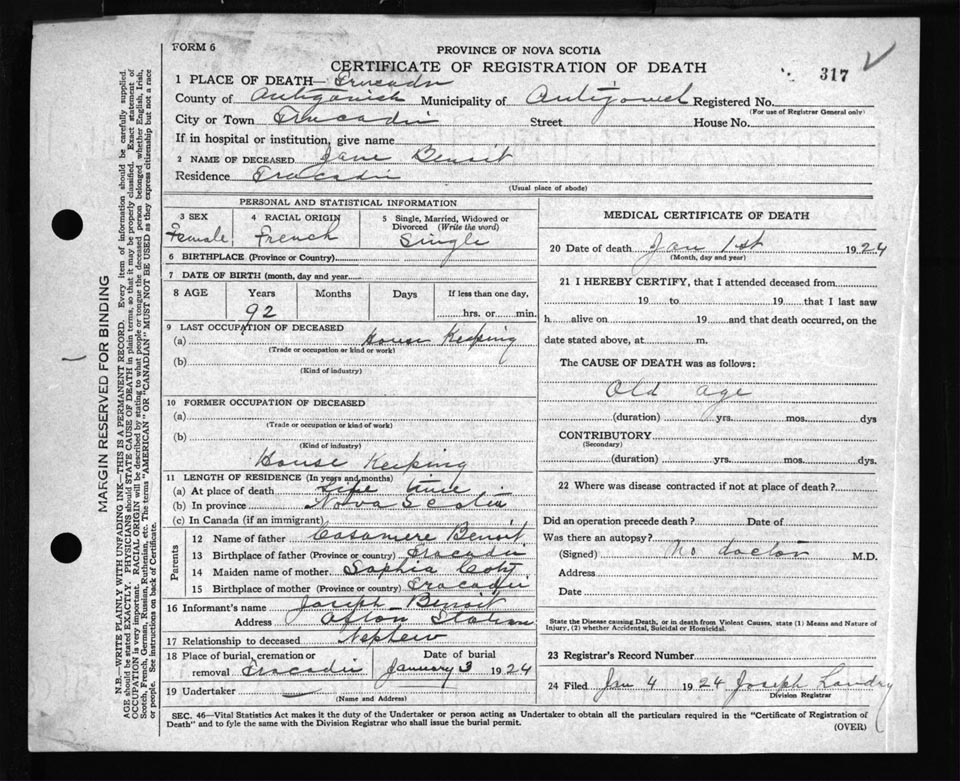 Death Registration: Year: 1924 file: 55 number: 317
