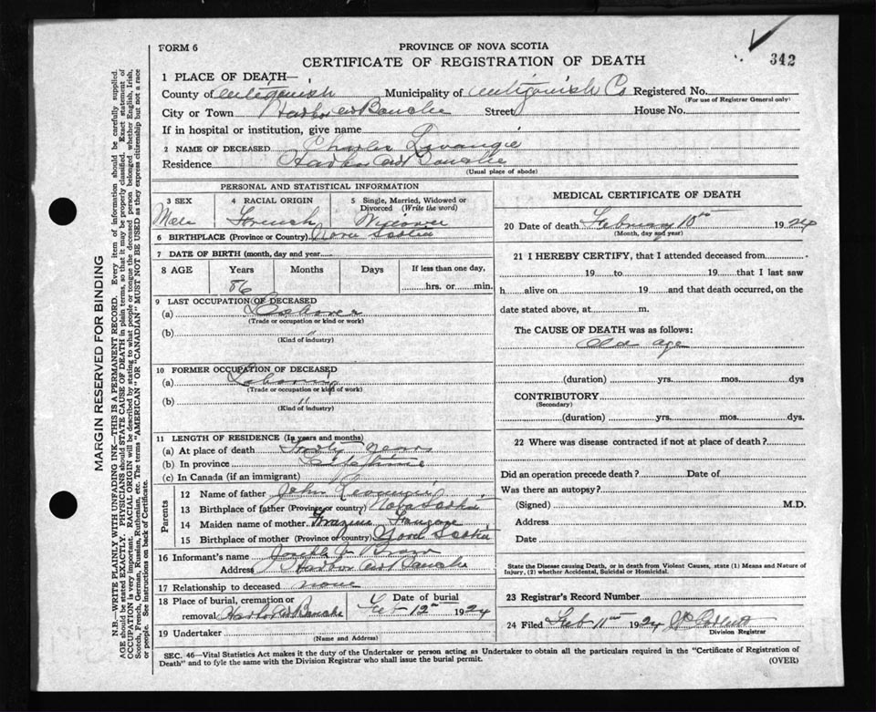 Male Death Registration: Year: 1924 file: 55 number: 342