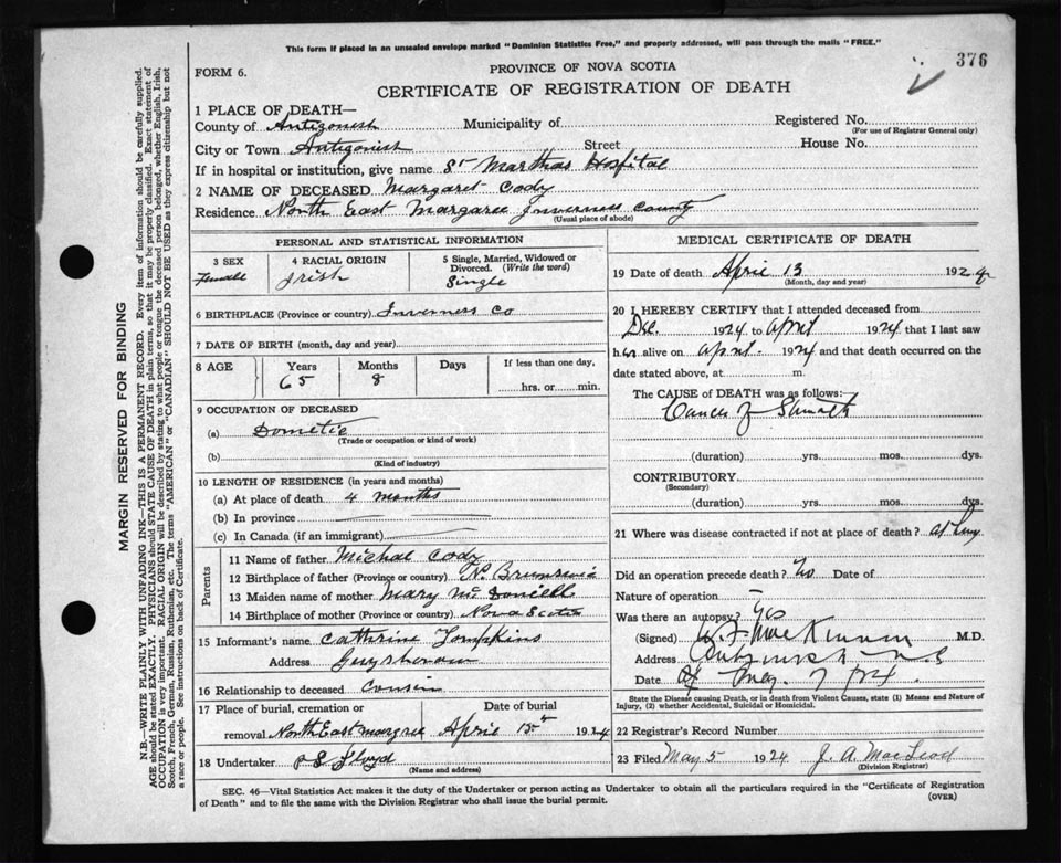 Nova Scotia Archives — https://archives.novascotia.ca/vital-statistics/death/?ID=162319