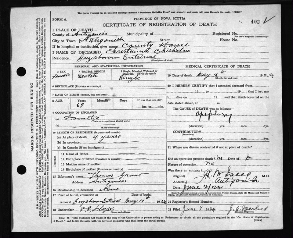 Nova Scotia Archives — https://archives.novascotia.ca/vital-statistics/death/?ID=162345