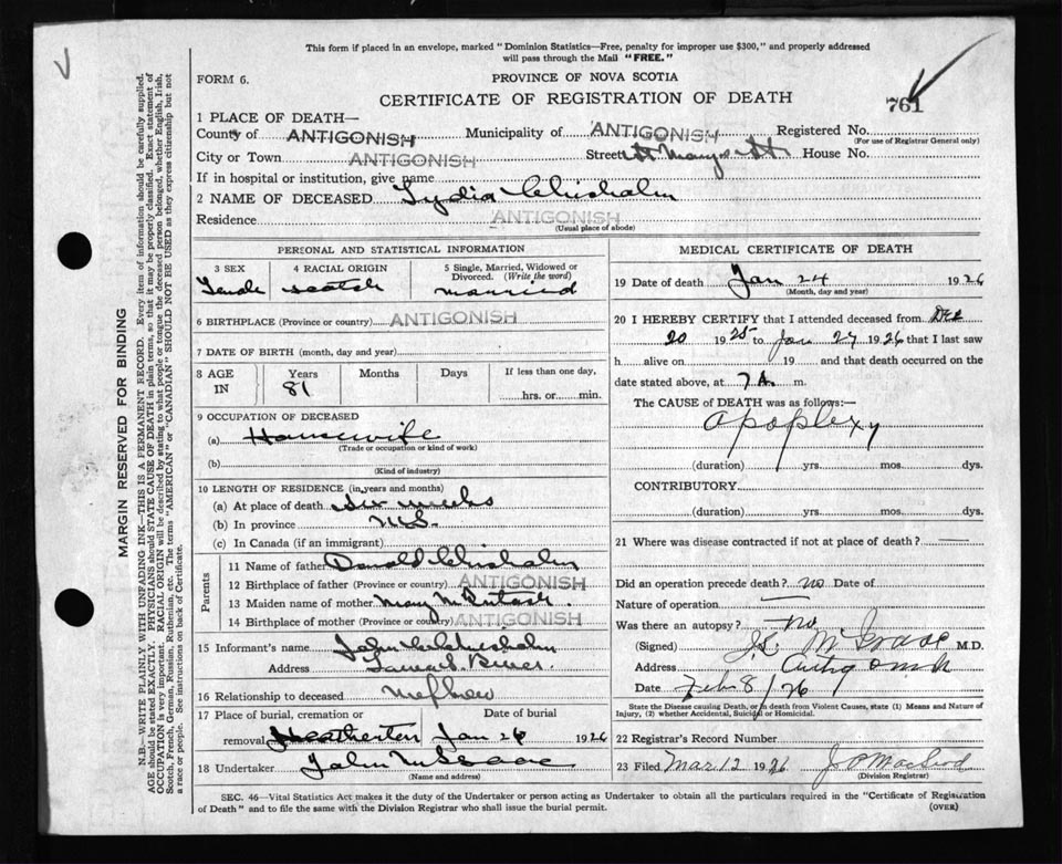 Nova Scotia Archives — https://archives.novascotia.ca/vital-statistics/death/?ID=162707