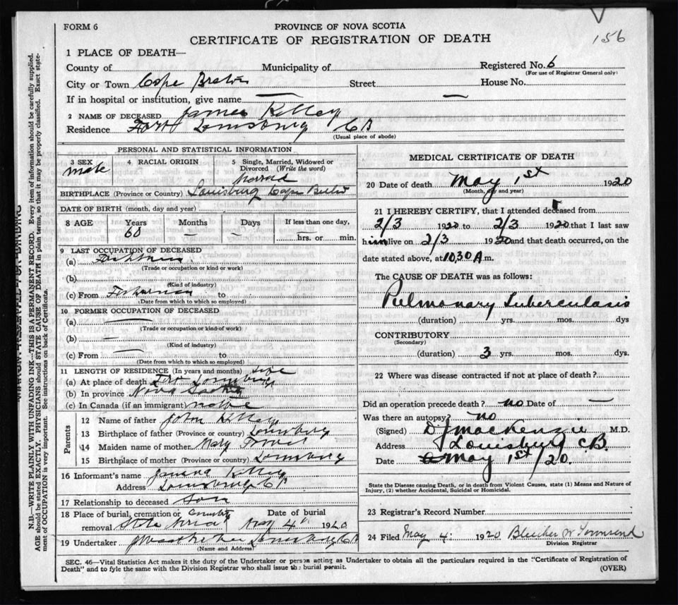 Male Death Registration: Year: 1920 file: 57 number: 156