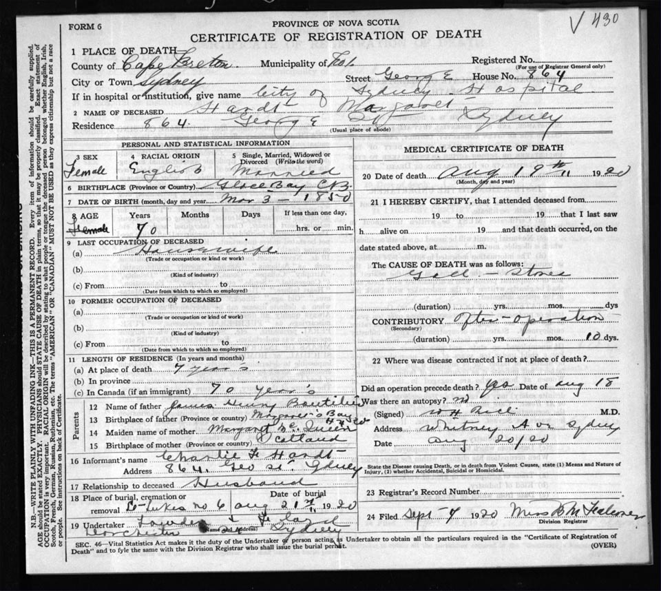 Nova Scotia Archives — https://archives.novascotia.ca/vital-statistics/death/?ID=164016