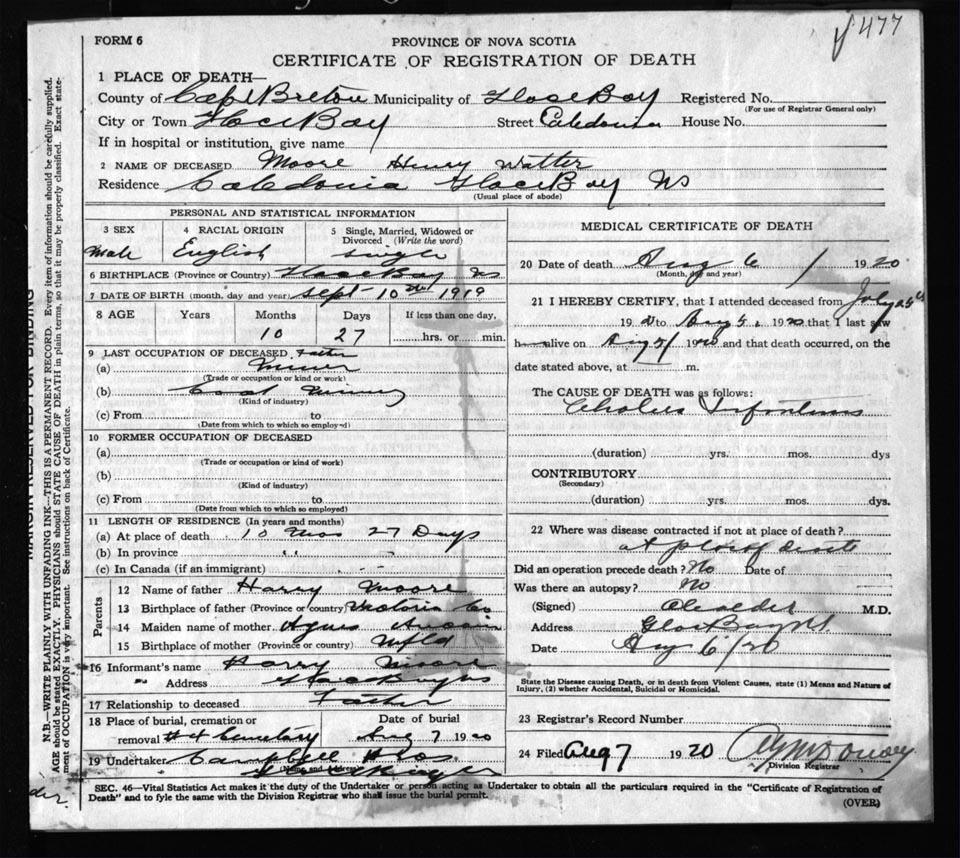 Male Death Registration: Year: 1920 file: 57 number: 477
