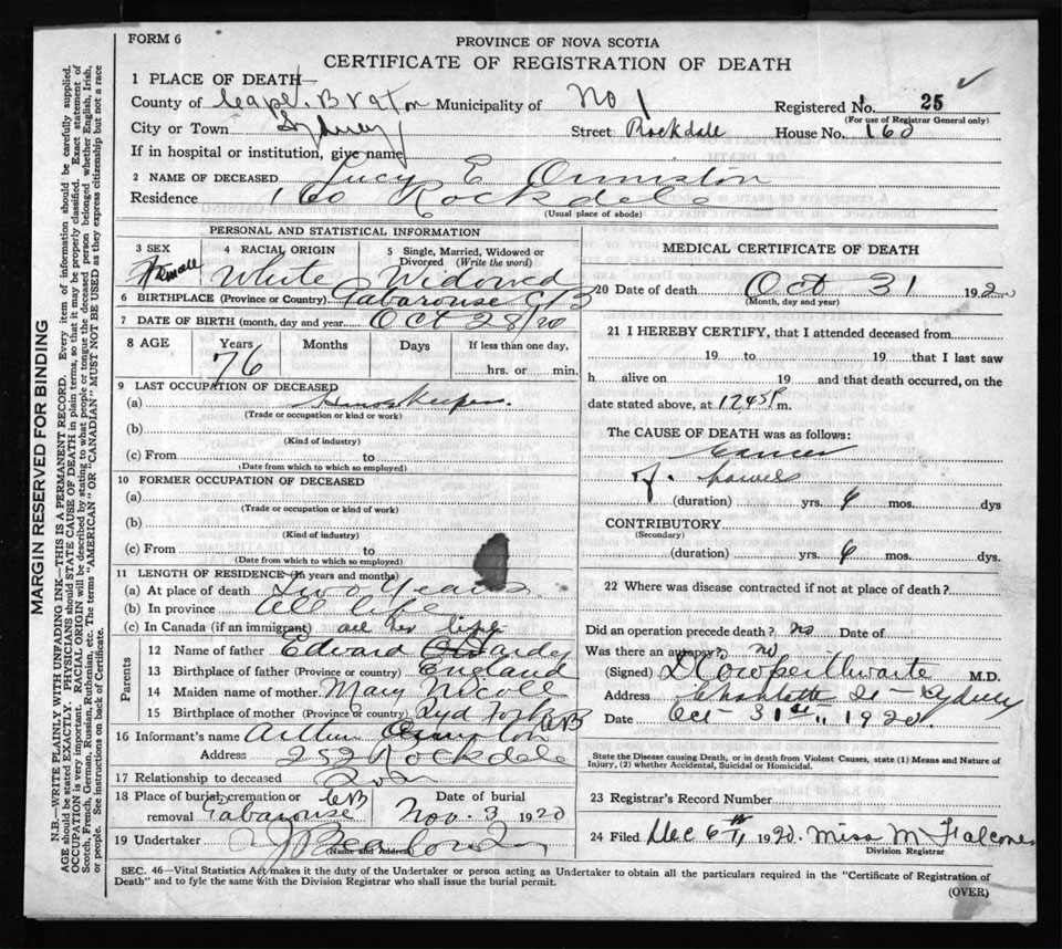 Nova Scotia Archives — https://archives.novascotia.ca/vital-statistics/death/?ID=164274
