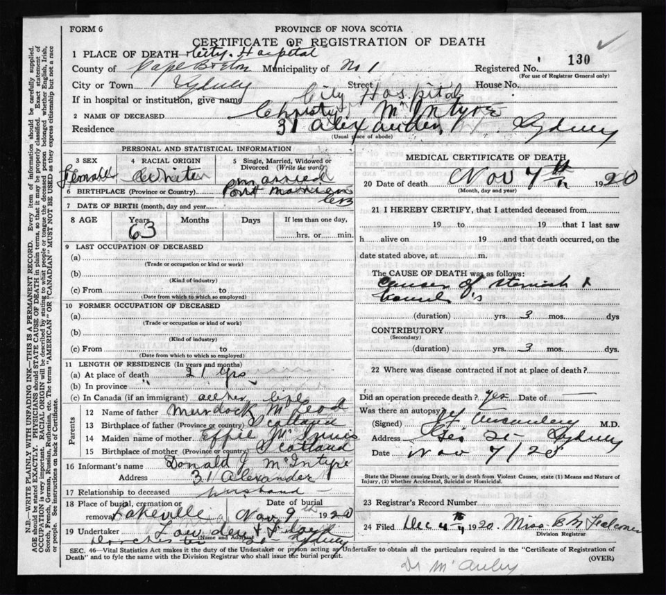 Nova Scotia Archives — https://archives.novascotia.ca/vital-statistics/death/?ID=164380