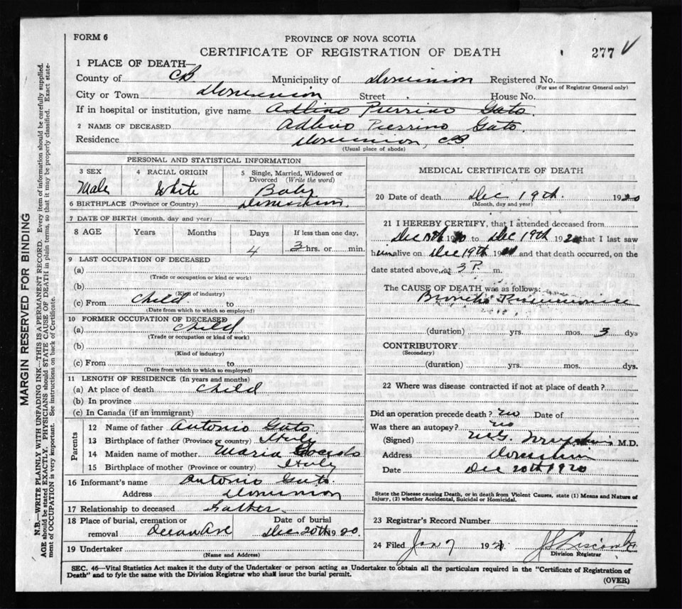 Male Death Registration: Year: 1920 file: 58 number: 277
