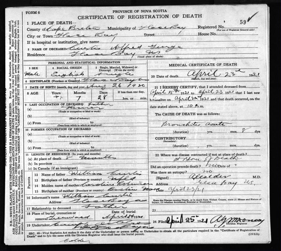 Male Death Registration: Year: 1921 file: 59 number: 59