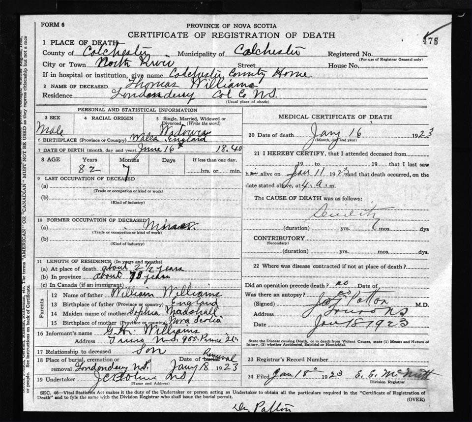 Death Registration: Year: 1923 file: 62 number: 476