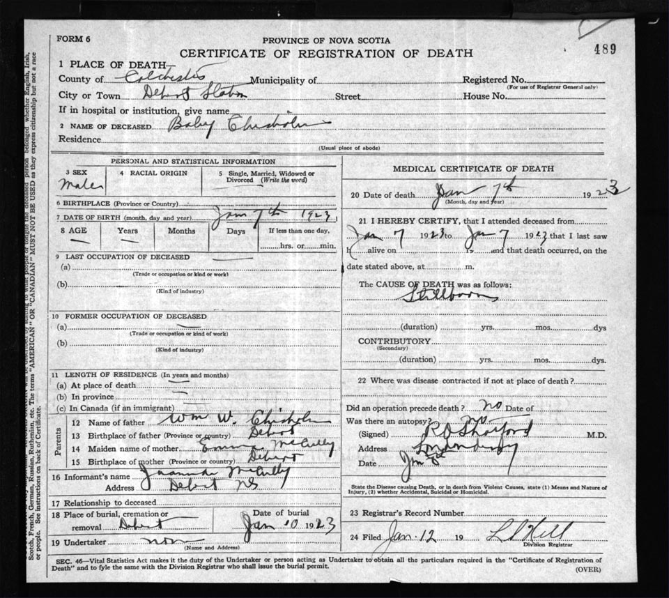 Death Registration: Year: 1923 file: 62 number: 489