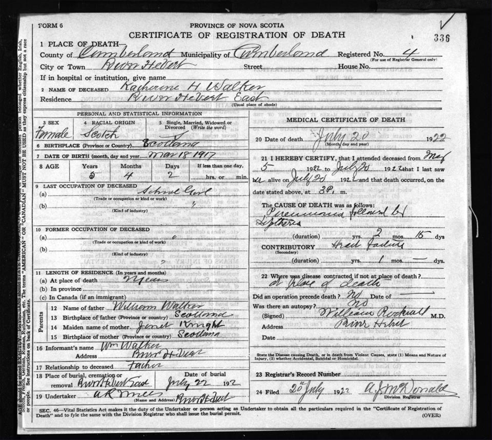 Death Registration: Year: 1922 file: 65 number: 336