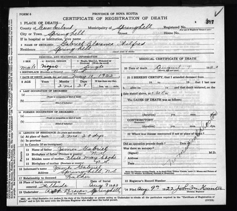 Death Registration: Year: 1922 file: 65 number: 387