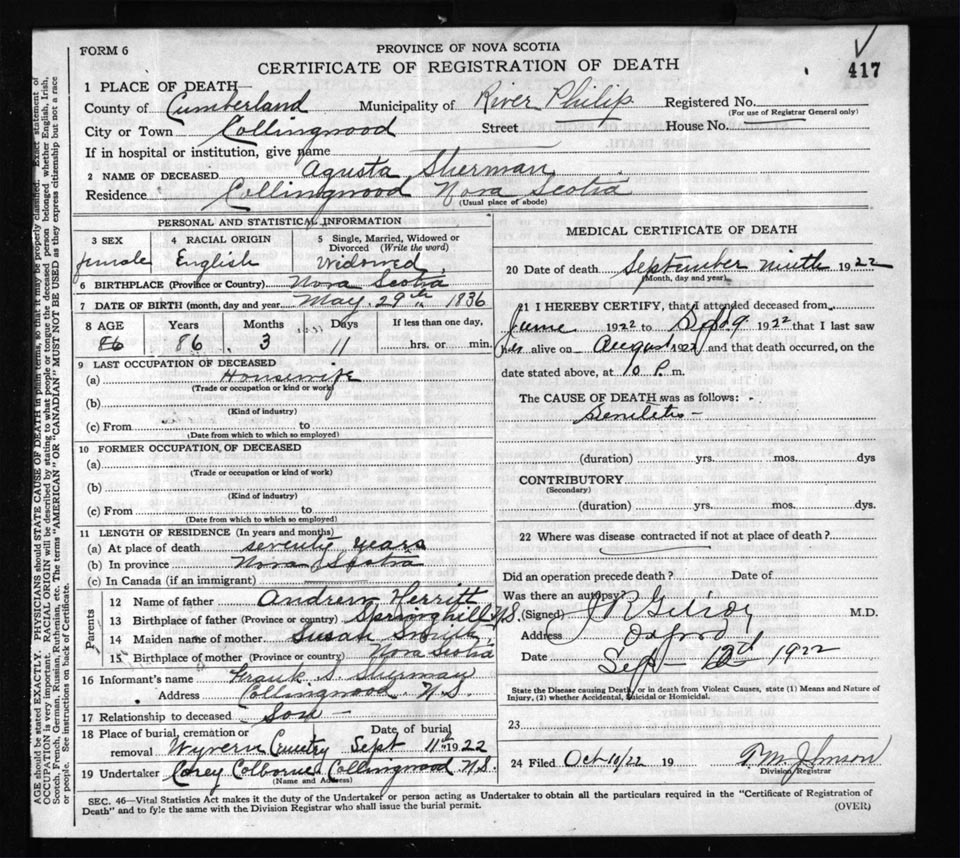 Nova Scotia Archives — https://archives.novascotia.ca/vital-statistics/death/?ID=168999