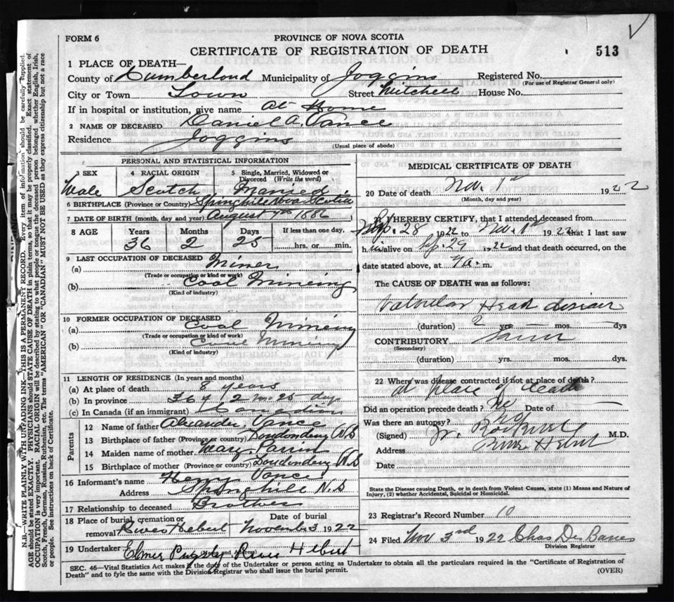 Death Registration: Year: 1922 file: 65 number: 513