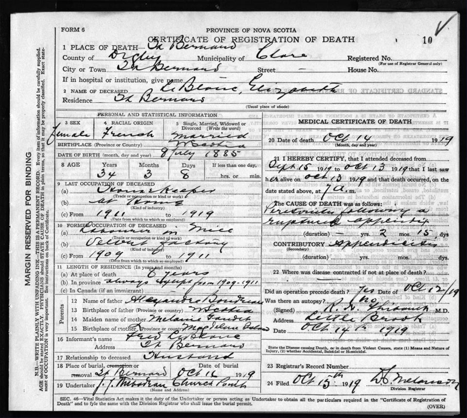 Death Registration: Year: 1919 file: 66 number: 10