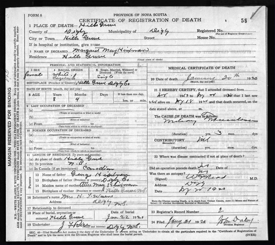 Death Registration: Year: 1920 file: 66 number: 56