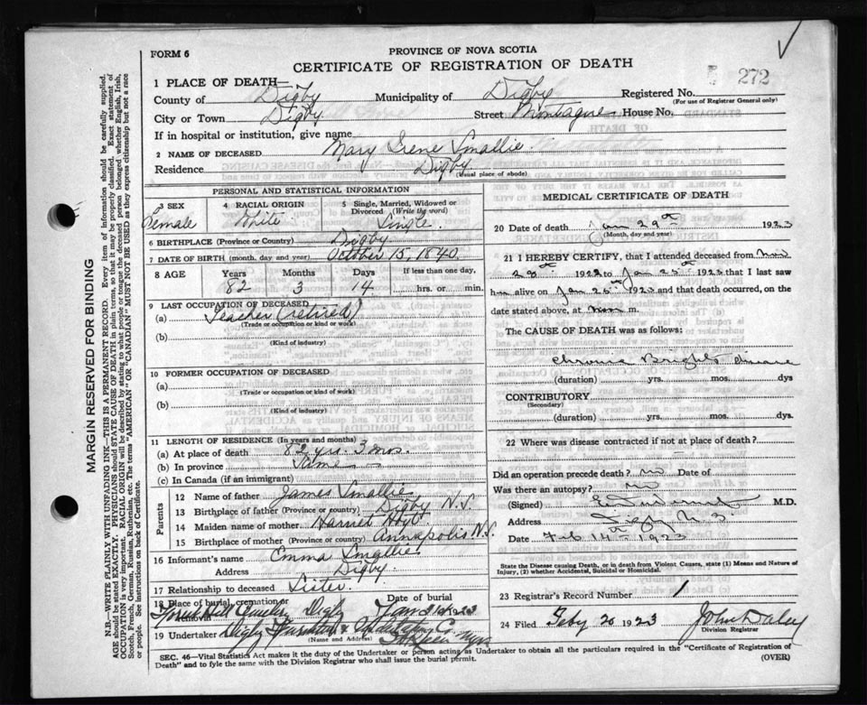 Death Registration: Year: 1923 file: 67 number: 272