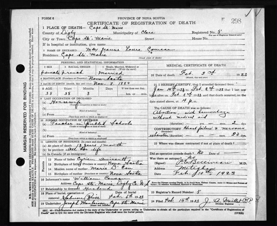 Death Registration: Year: 1923 file: 67 number: 298