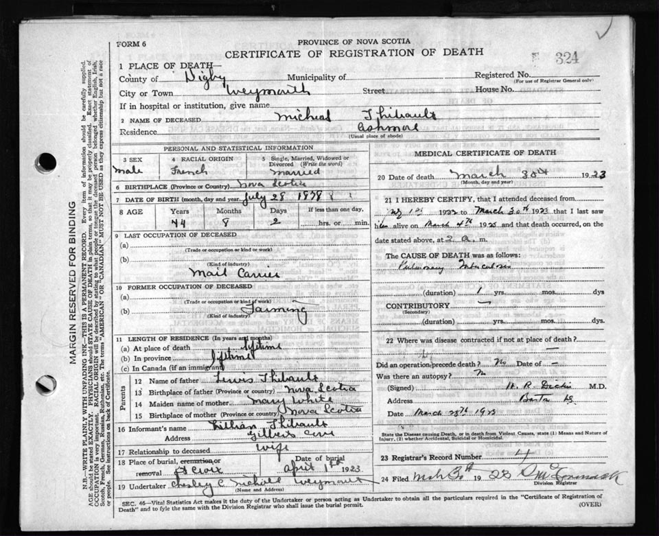 Death Registration: Year: 1923 file: 67 number: 324