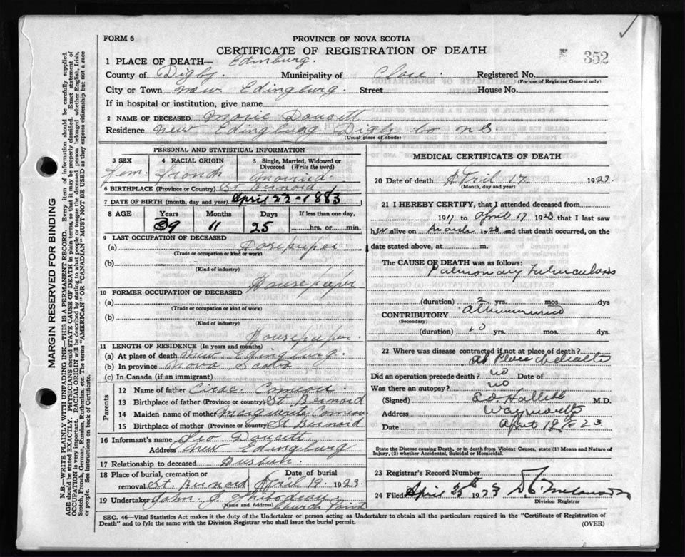 Death Registration: Year: 1923 file: 67 number: 352