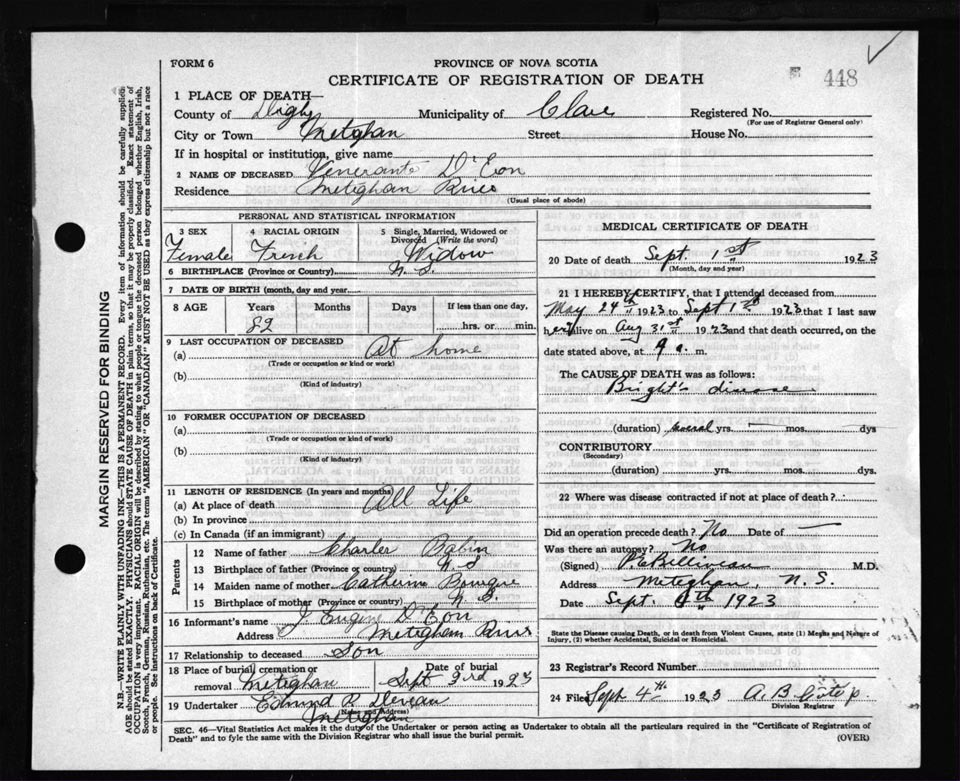 Death Registration: Year: 1923 file: 67 number: 448