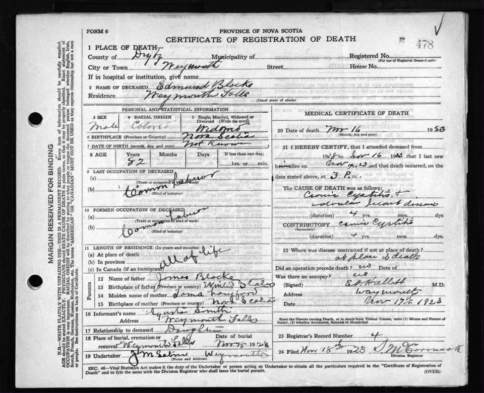 Death Registration: Year: 1923 file: 67 number: 478