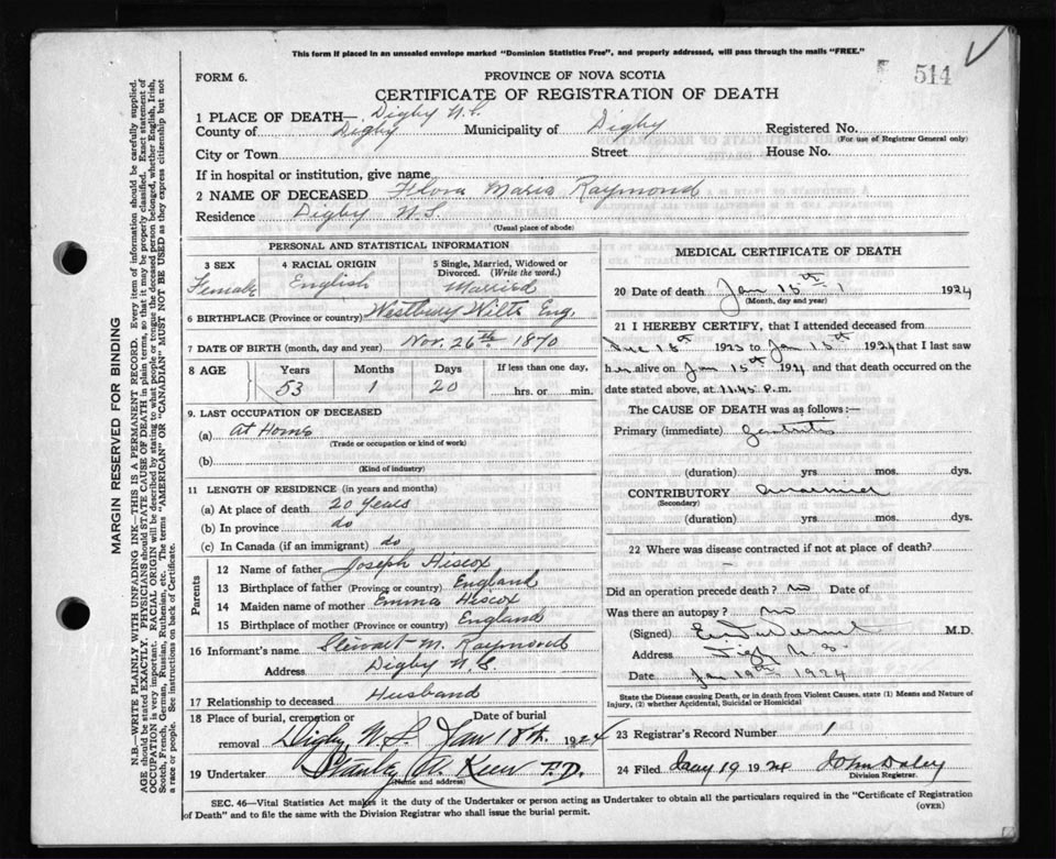 Death Registration: Year: 1924 file: 67 number: 514