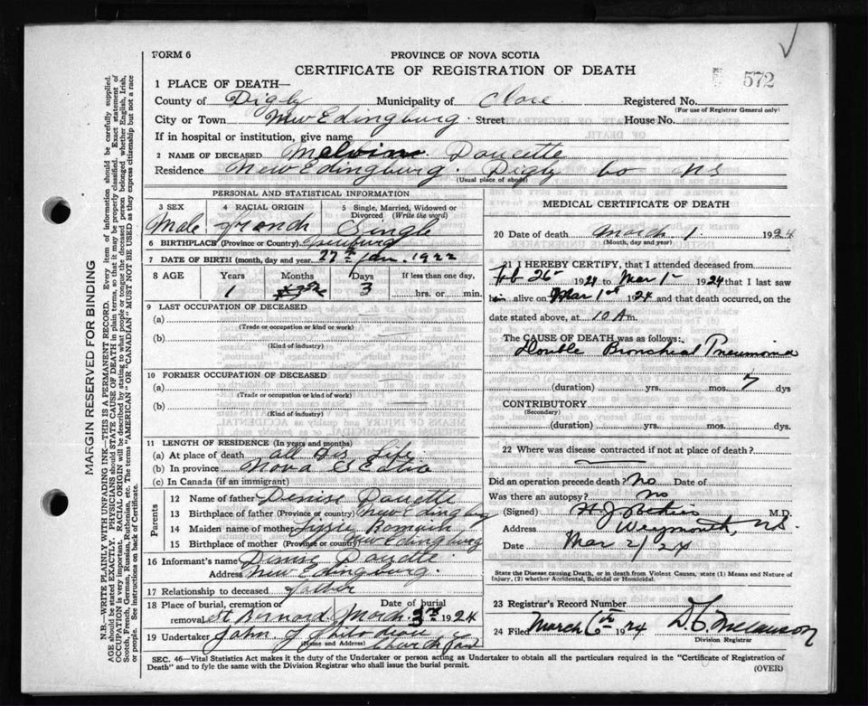 Death Registration: Year: 1924 file: 67 number: 572