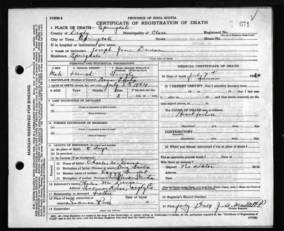 Death Registration: Year: 1924 file: 67 number: 671