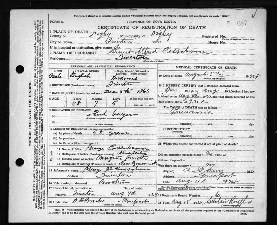 Death Registration: Year: 1924 file: 67 number: 687