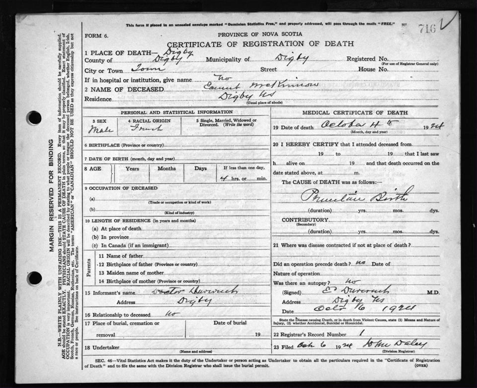 Death Registration: Year: 1924 file: 67 number: 716
