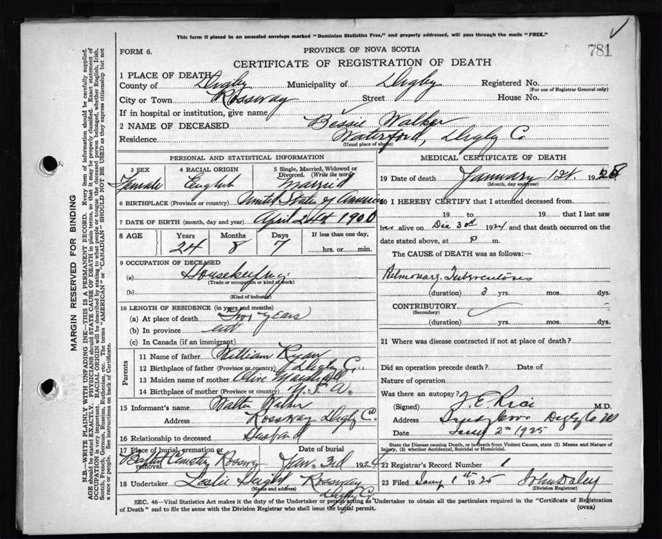 Death Registration: Year: 1925 file: 67 number: 781