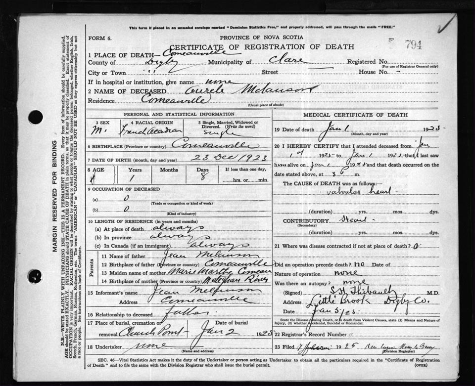 Death Registration: Year: 1925 file: 67 number: 794