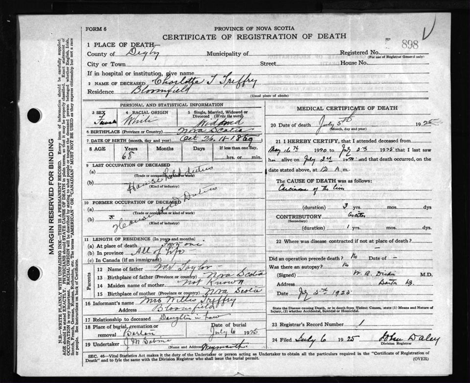 Nova Scotia Archives — https://archives.novascotia.ca/vital-statistics/death/?ID=170729