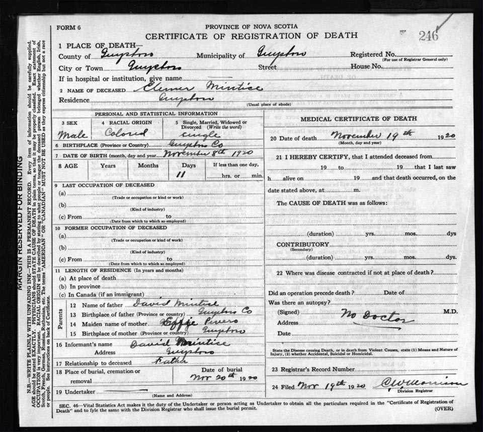 Death Registration: Year: 1920 file: 68 number: 246