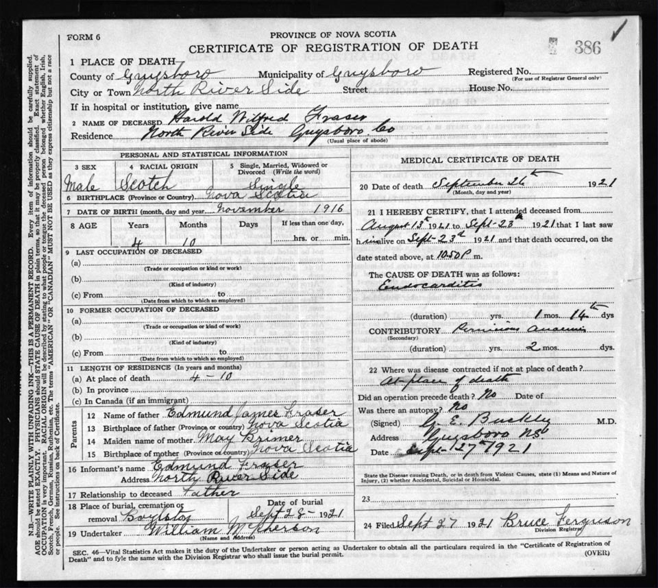 Death Registration: Year: 1921 file: 68 number: 386