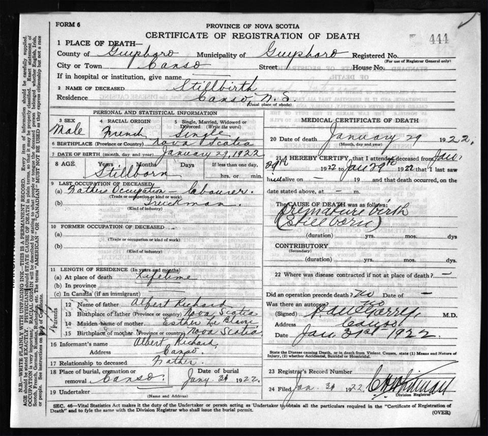 Death Registration: Year: 1922 file: 68 number: 444