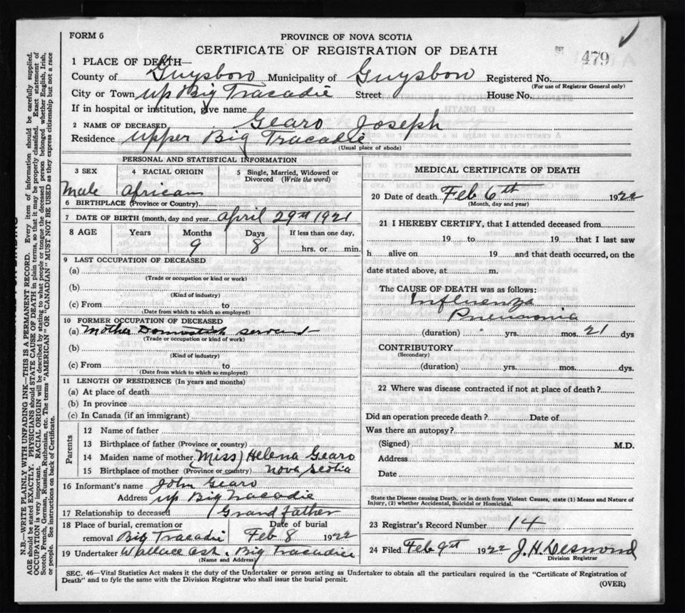 Death Registration: Year: 1922 file: 68 number: 479