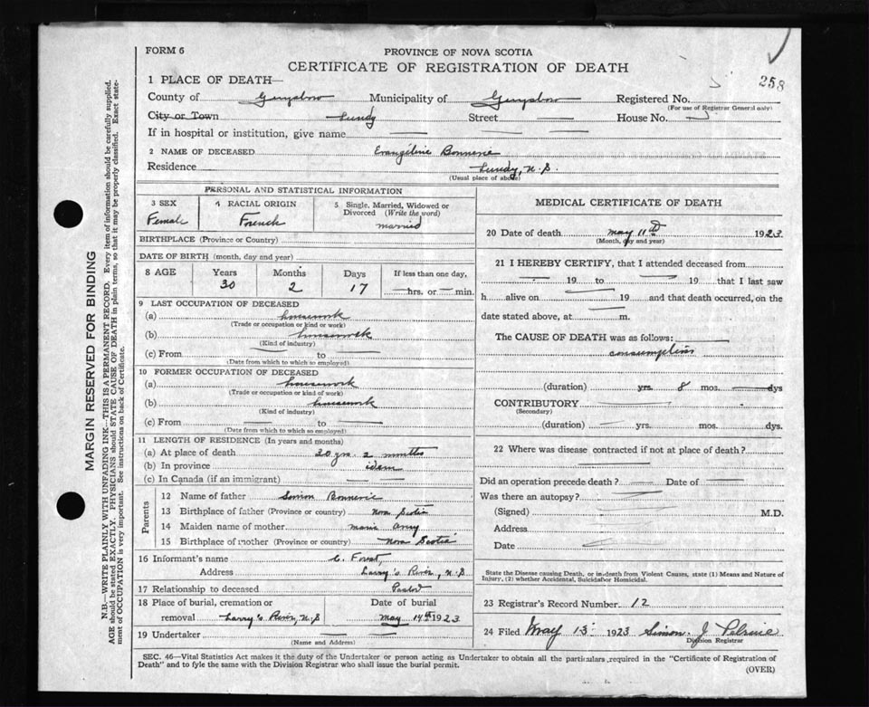 Death Registration: Year: 1923 file: 69 number: 258