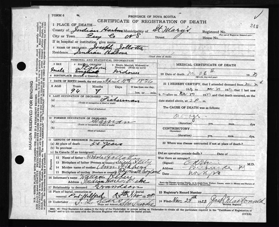 Death Registration: Year: 1923 file: 69 number: 346