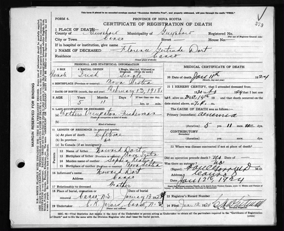 Death Registration: Year: 1924 file: 69 number: 379