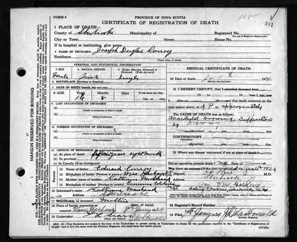 Death Registration: Year: 1924 file: 69 number: 381