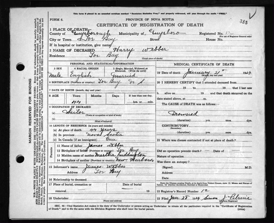 Death Registration: Year: 1924 file: 69 number: 385