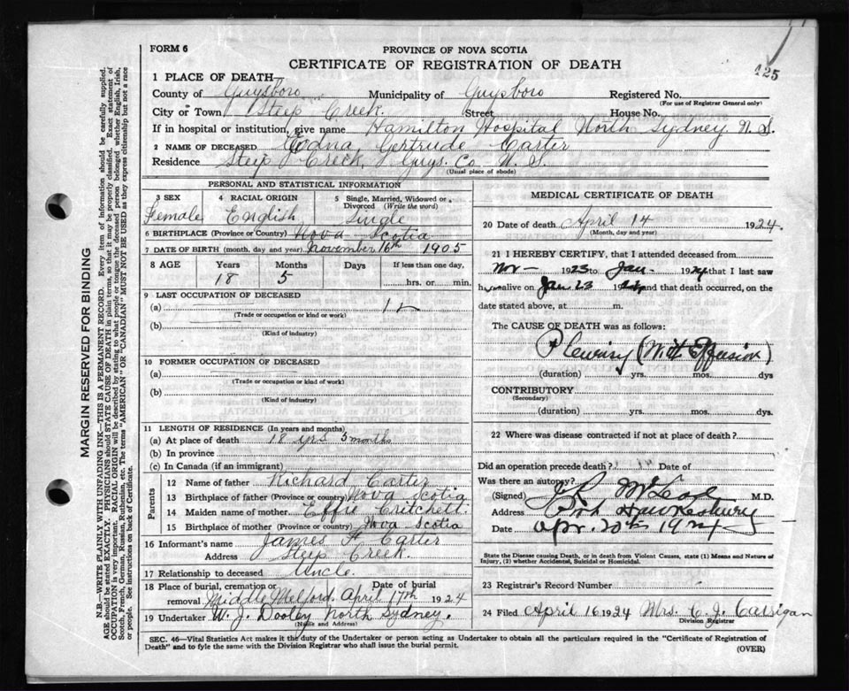 Death Registration: Year: 1924 file: 69 number: 425