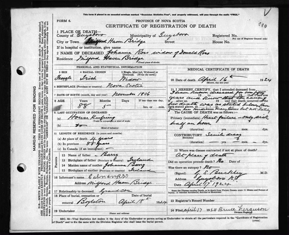 Nova Scotia Archives — https://archives.novascotia.ca/vital-statistics/death/?ID=172080