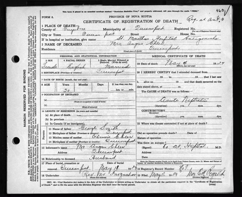 Death Registration: Year: 1924 file: 69 number: 460