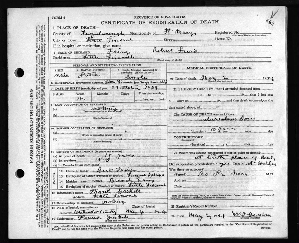 Death Registration: Year: 1924 file: 69 number: 462