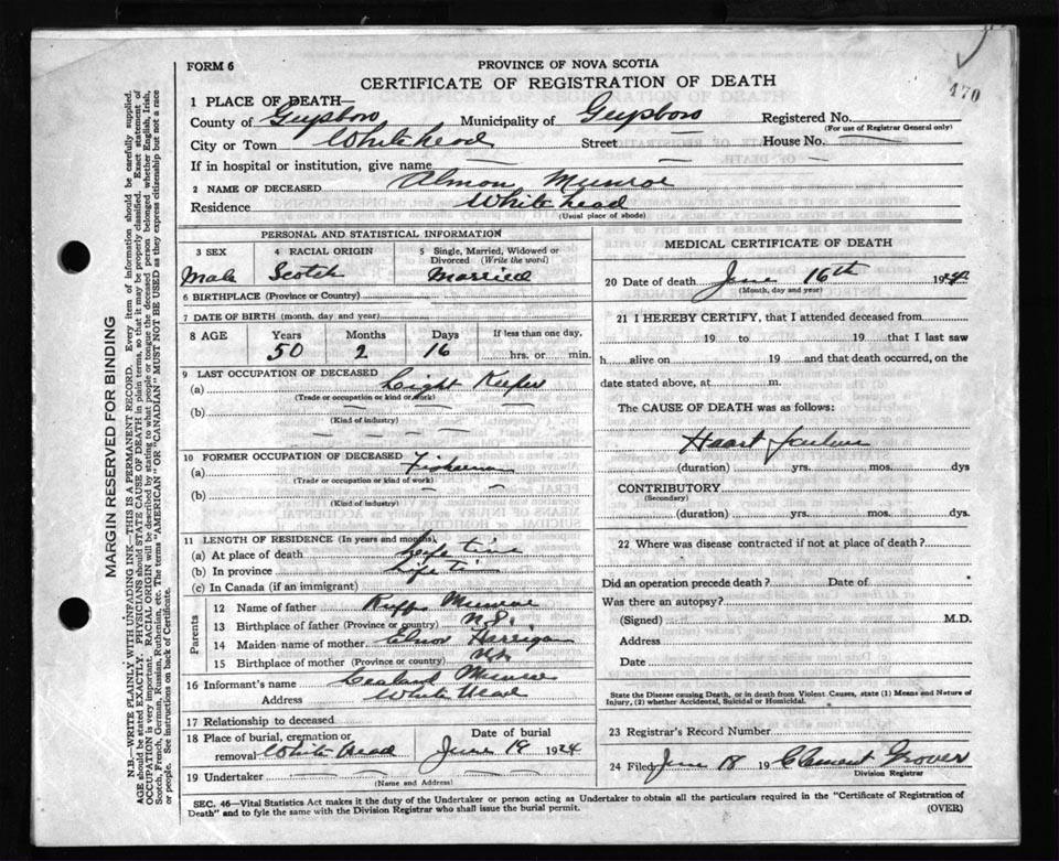 Death Registration: Year: 1924 file: 69 number: 470