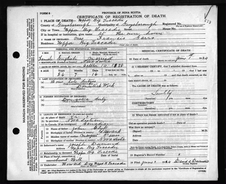 Death Registration: Year: 1924 file: 69 number: 479