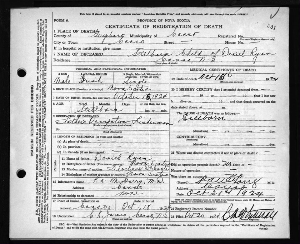 Male Death Registration: Year: 1924 file: 69 number: 531